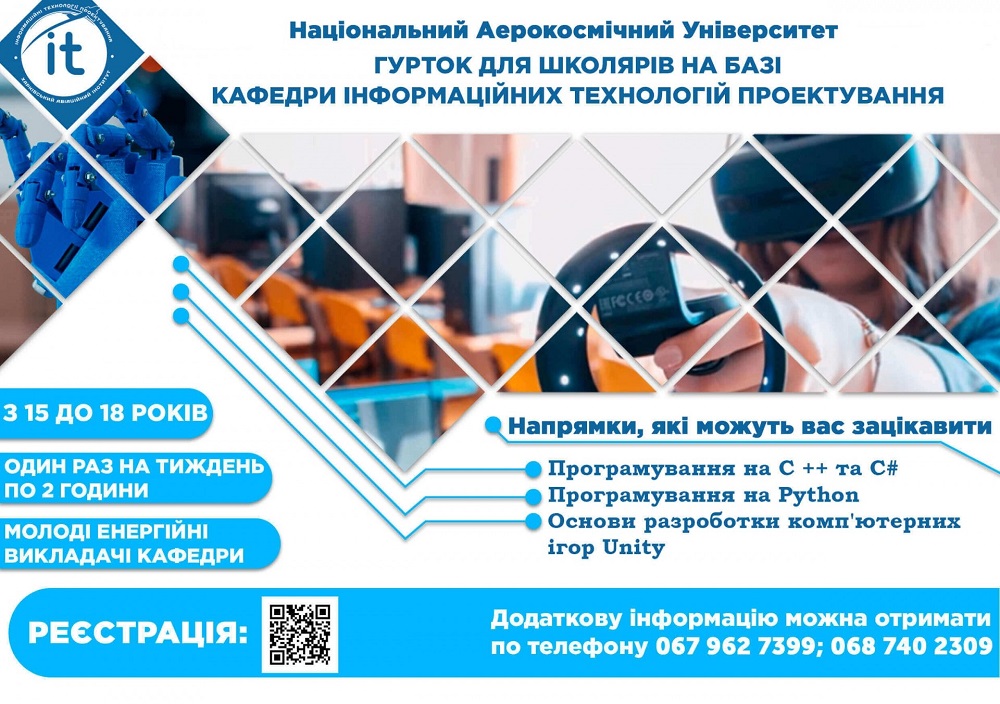 At the Department of Information Design Technologies of National Aerospace University "Kharkiv Aviation Institute", a new club is starting where school students will have the opportunity to explore modern technologies for computer game development and learn programming in Python, C++, and C#.