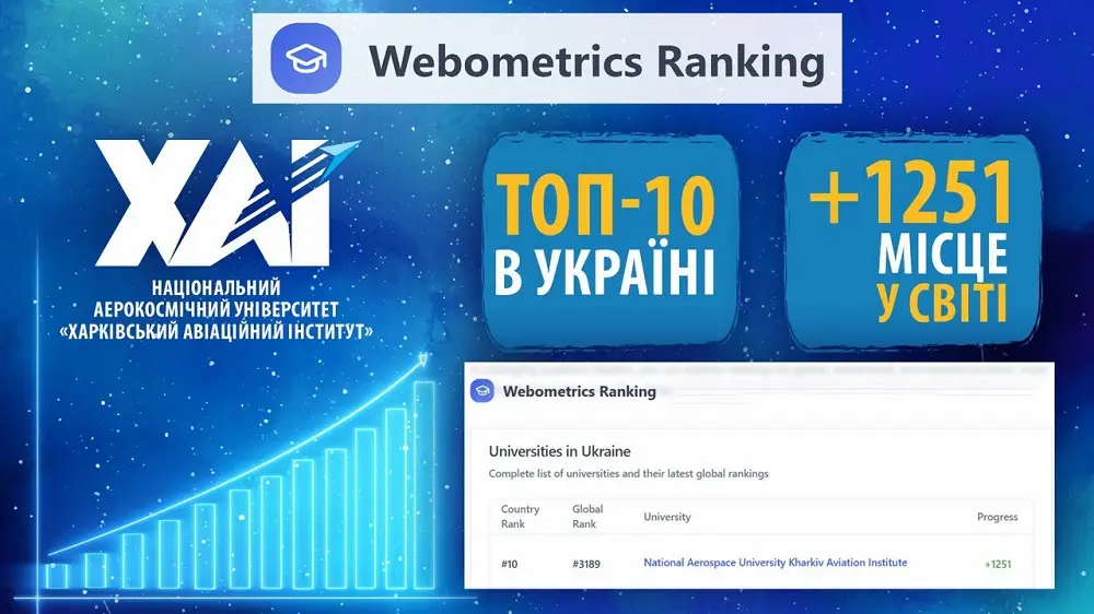 KhAI entered the TOP-10 Ukrainian universities in the Webometrics ranking and rose 1251 positions in six months!