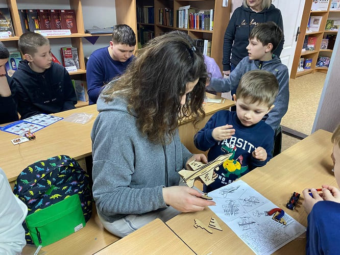 До них завітав клуб дитячої творчості ХАІ «Діти да Вінчі» на чолі з керівником і натхненником — професором кафедри міцності літальних апаратів Владиславом ДЕМЕНКОМ. Маленькі дослідники не просто спостерігали, а активно працювали: конструювали й проєктували, збирали легендарний самонесний міст Леонардо да Вінчі, відкривали для себе принципи його роботи й переконувалися, що інженерія може бути захопливою вже з перших кроків.