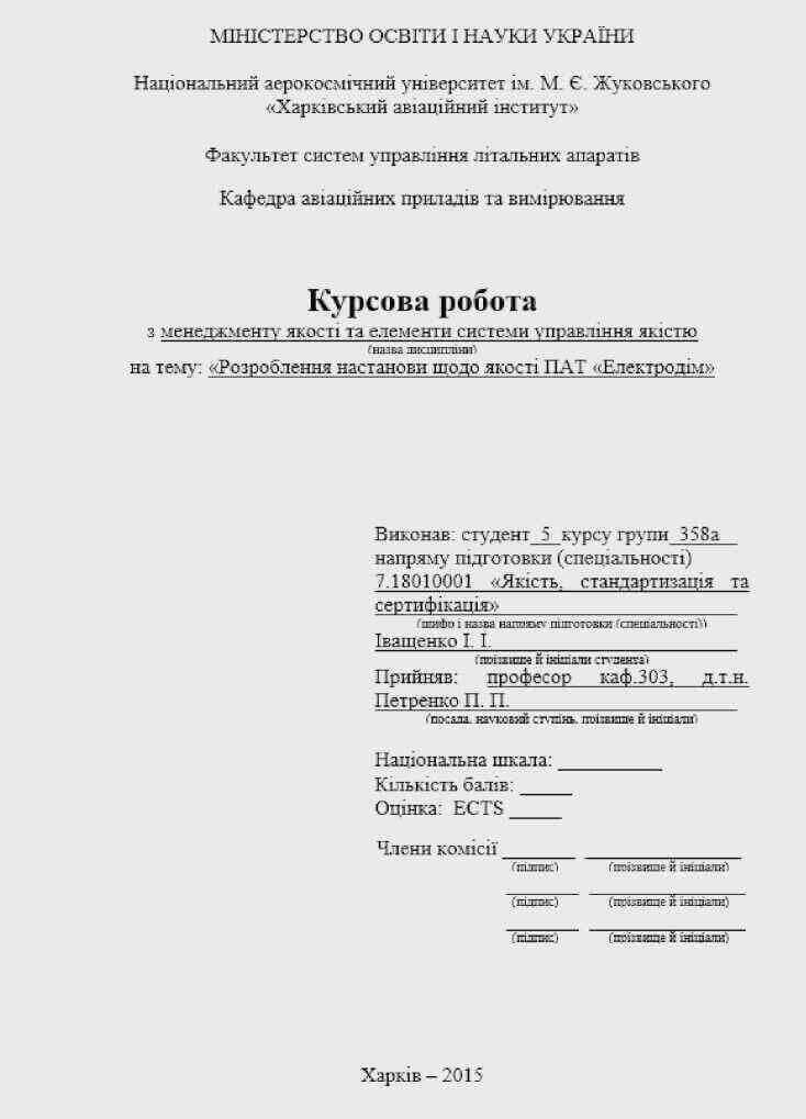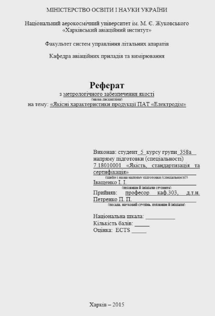 1) назва навчального закладу (абревіатура) - ХАІ;