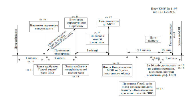 Захист дисертації на здобуття наукового ступеня доктора наук проводиться не раніше ніж через місяць після розміщення на офіційному вебсайті МОН такого повідомлення.