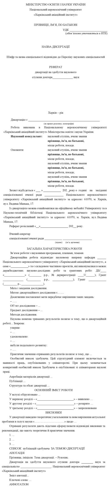 А2.1. Реферат дисертації на здобуття наукового ступеня доктора наук – це стислий виклад докторської дисертації, який виконується після її фактичного завершення. Без Реферату дисертація не може бути допущена до захисту.
