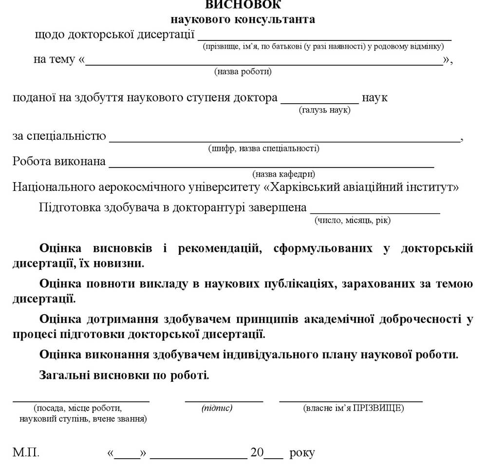 3.7. Завершення підготовки здобувача в докторантурі Університету підтверджується висновком наукового консультанта, який оформлюється у двох примірниках (додаток Б).
