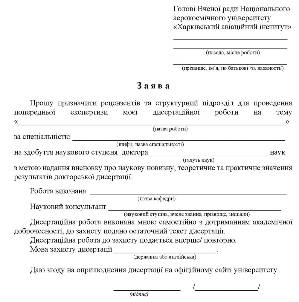 4.4. Для проведення попередньої експертизи докторської дисертації заява здобувача з візою голови вченої ради Університету передається до визначеної профільної кафедри.