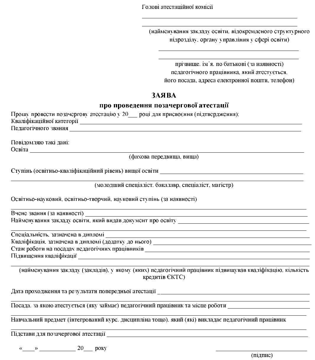 3.2. Для проведення позачергової Атестації до 20 грудня до атестаційної комісії подається заява за формою, наведеною в додатку 1 до цього Положення.
