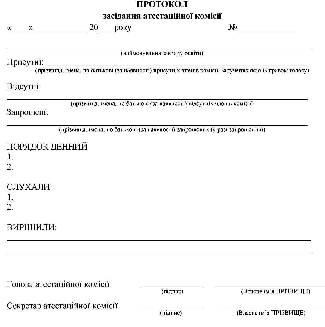 3.10. Засідання атестаційної комісії оформлюються протоколом за формою, наведеною в додатку 2 до цього Положення.