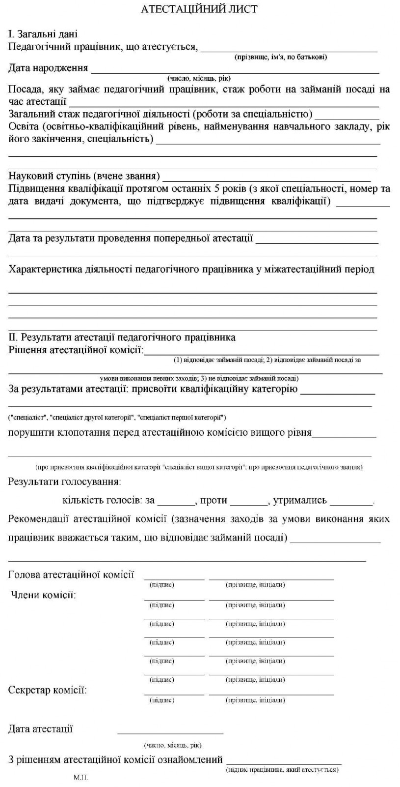 3.11. На підставі рішення атестаційної комісії секретар оформляє атестаційний лист за формою згідно з Додатком 3 до цього Положення, у якому фіксується результат атестації педагогічного працівника.