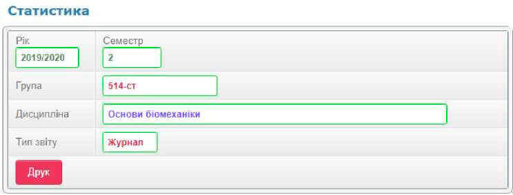 3.14 У разі закріплення за однією академічною групою студентів кількох викладачів, вони всі отримують доступ до сторінки журналу, на якій відображено результати роботи студентів цієї академічної групи.