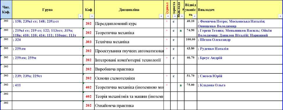 - результати поточної успішності студентів з кожної навчальної дисципліни;