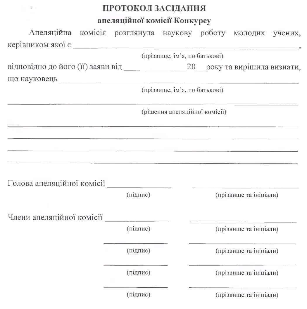 6.4 Апеляційна комісія протягом трьох робочих днів з дня надходження заяви приймає рішення, що фіксується в протоколі засідання апеляційної комісії Конкурсу (Додаток А), та надає його заявнику.