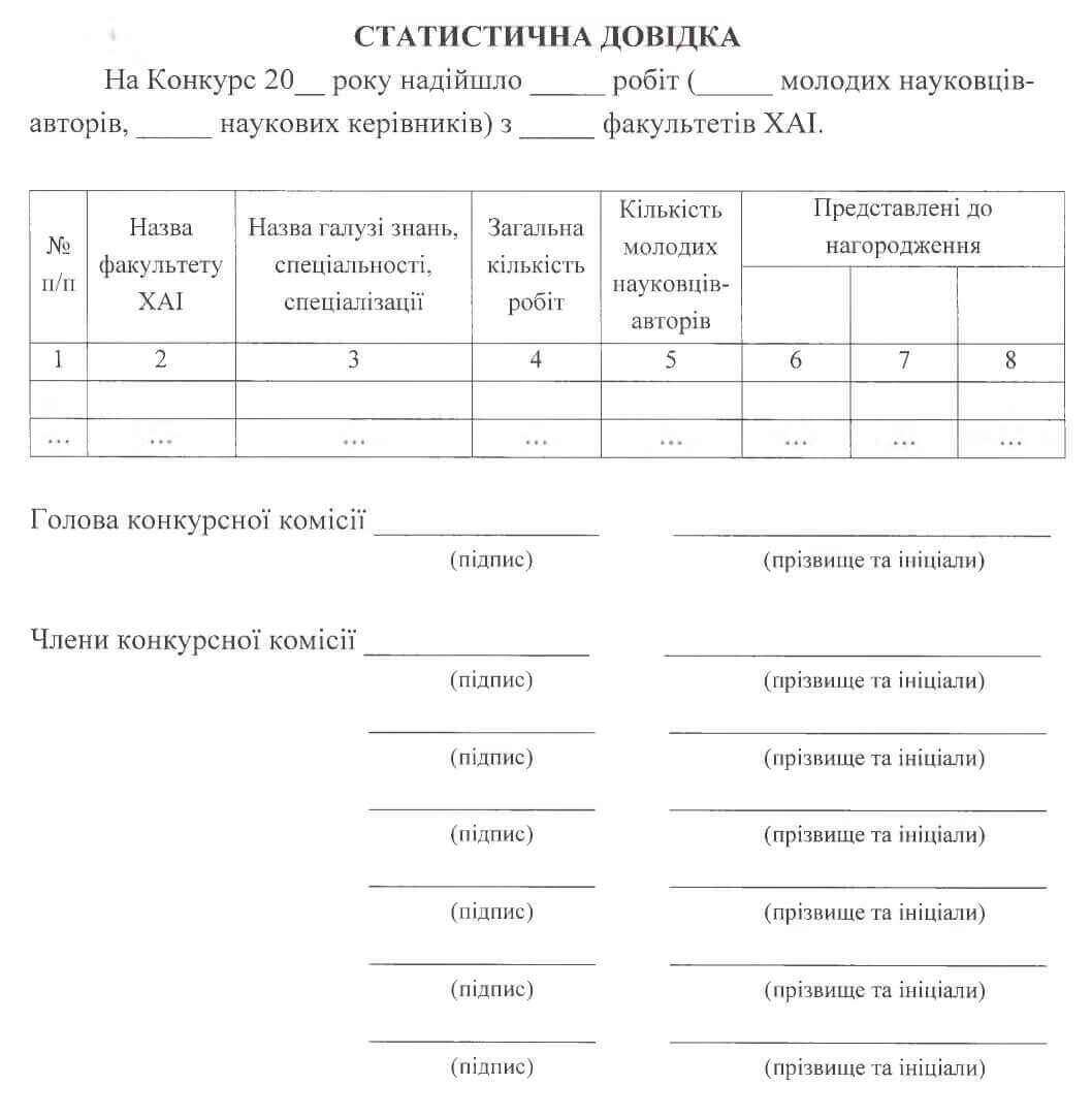 7.3 Перелік переможців затверджується наказом Ректора ХАІ та заноситься до статистичної довідки (Додаток В).