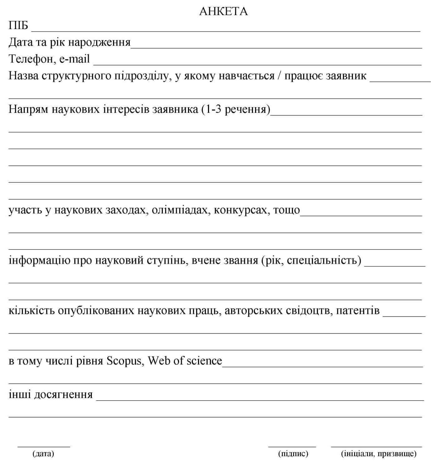 Зразок анкети кандидата в члени