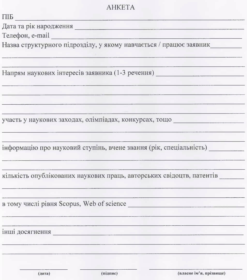 Зразок анкети кандидата в члени наукового товариства студентів, аспірантів, докторантів і молодих вчених