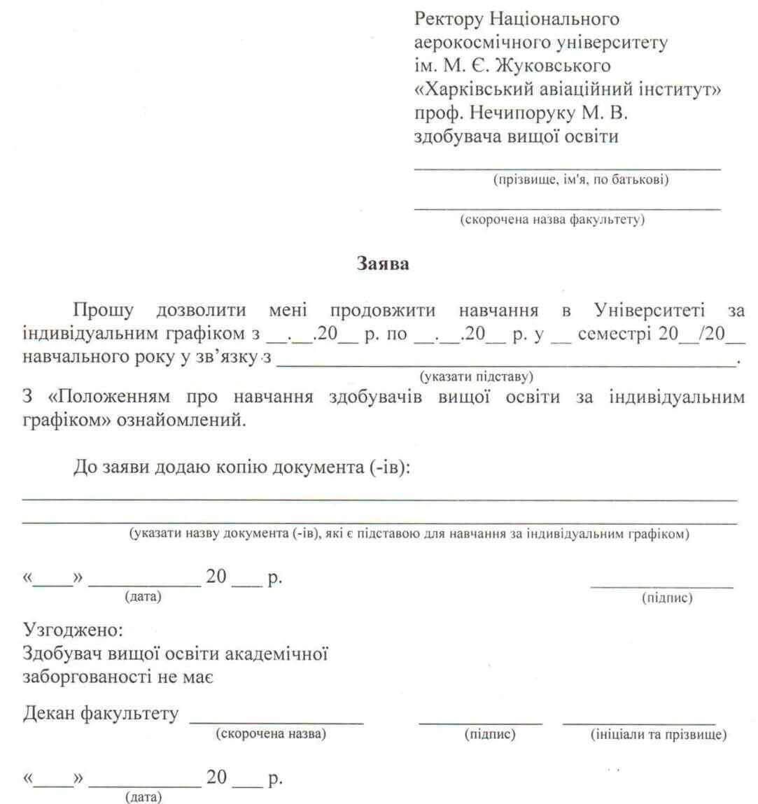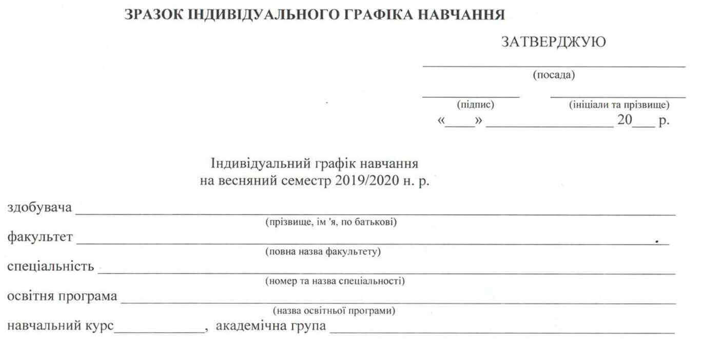 3.2 Заява щодо надання графіка індивідуального навчання на наступний семестр подається до його початку.