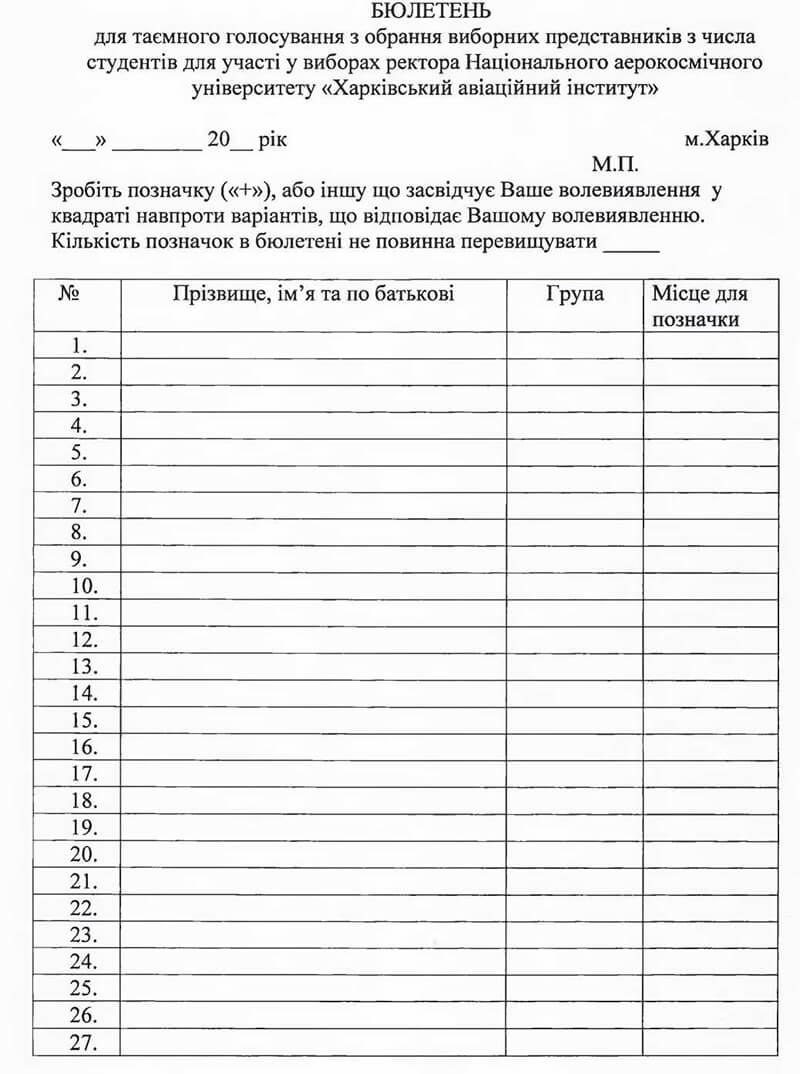 з числа студентів для участі у виборах ректора