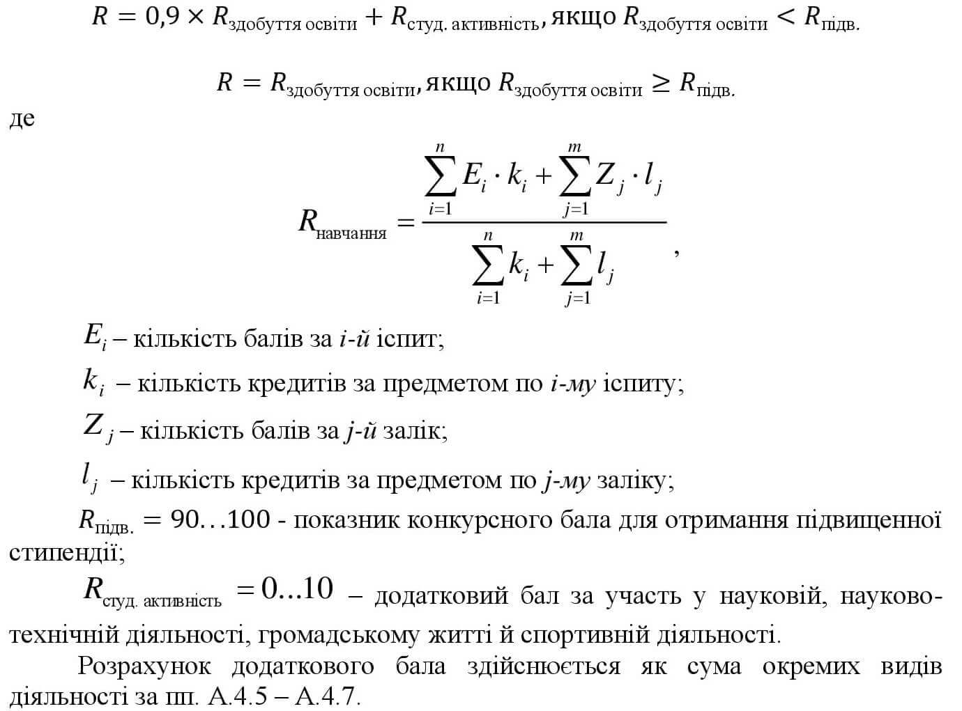 А.4.5.9. При позитивному рішенні стипендіальні комісії факультетів ураховують додаткові бали при розрахунку рейтингу успішності студентів.