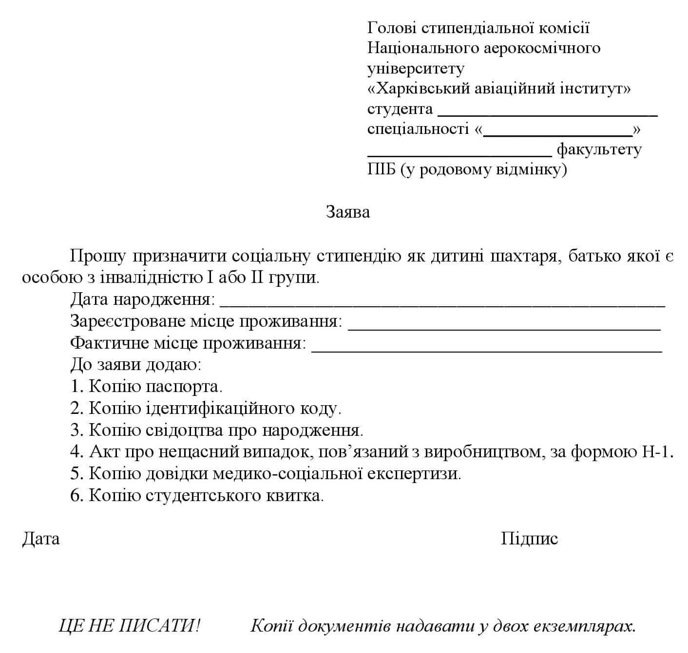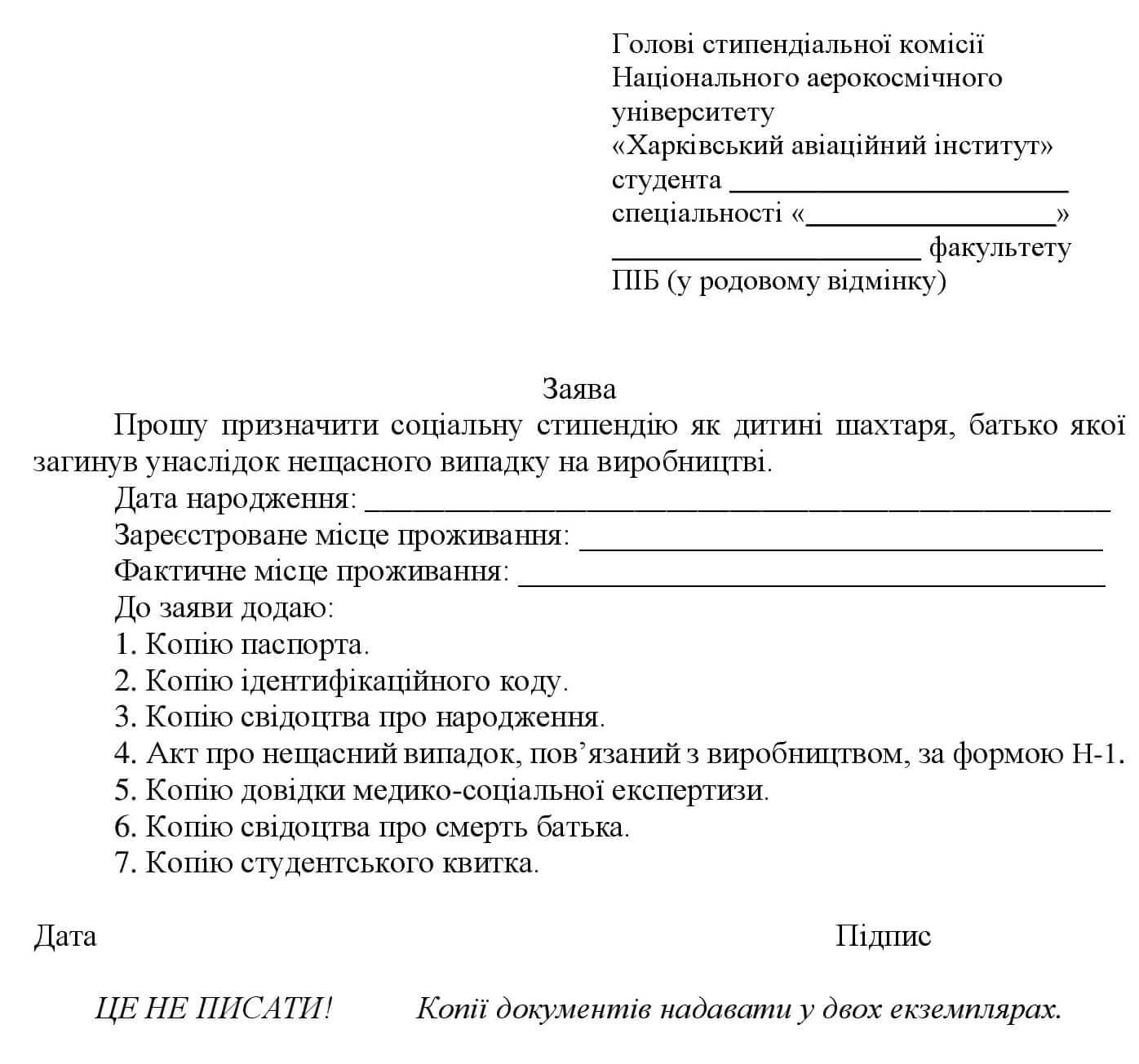Б.8 Форма заяви для особи, яка є дитиною шахтаря, що загинув унаслідок нещасного випадку на виробництві