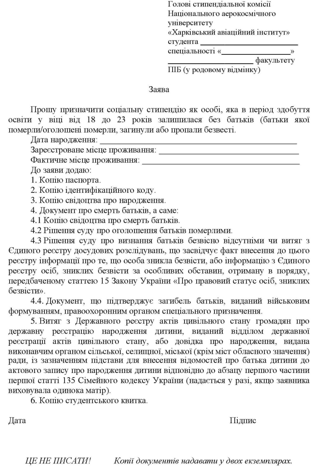 Б.13 Форма заяви для особи, яка в період здобуття освіти у віці від 18 до 23 років залишилася без батьків
