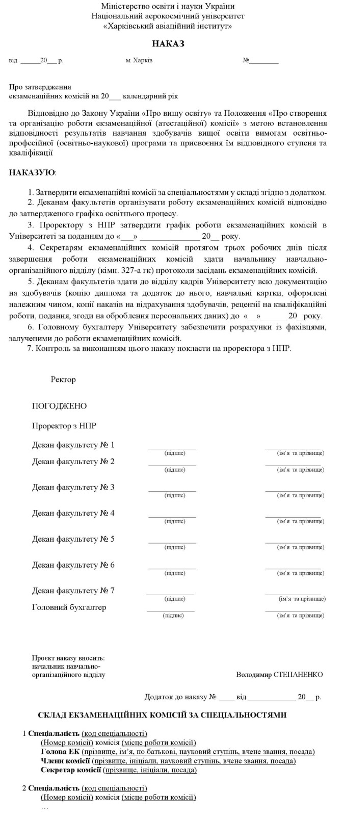 Форма наказу про створення екзаменаційних комісій