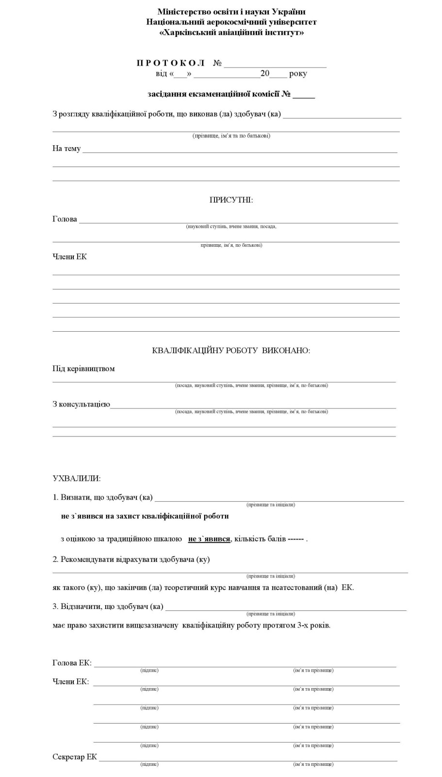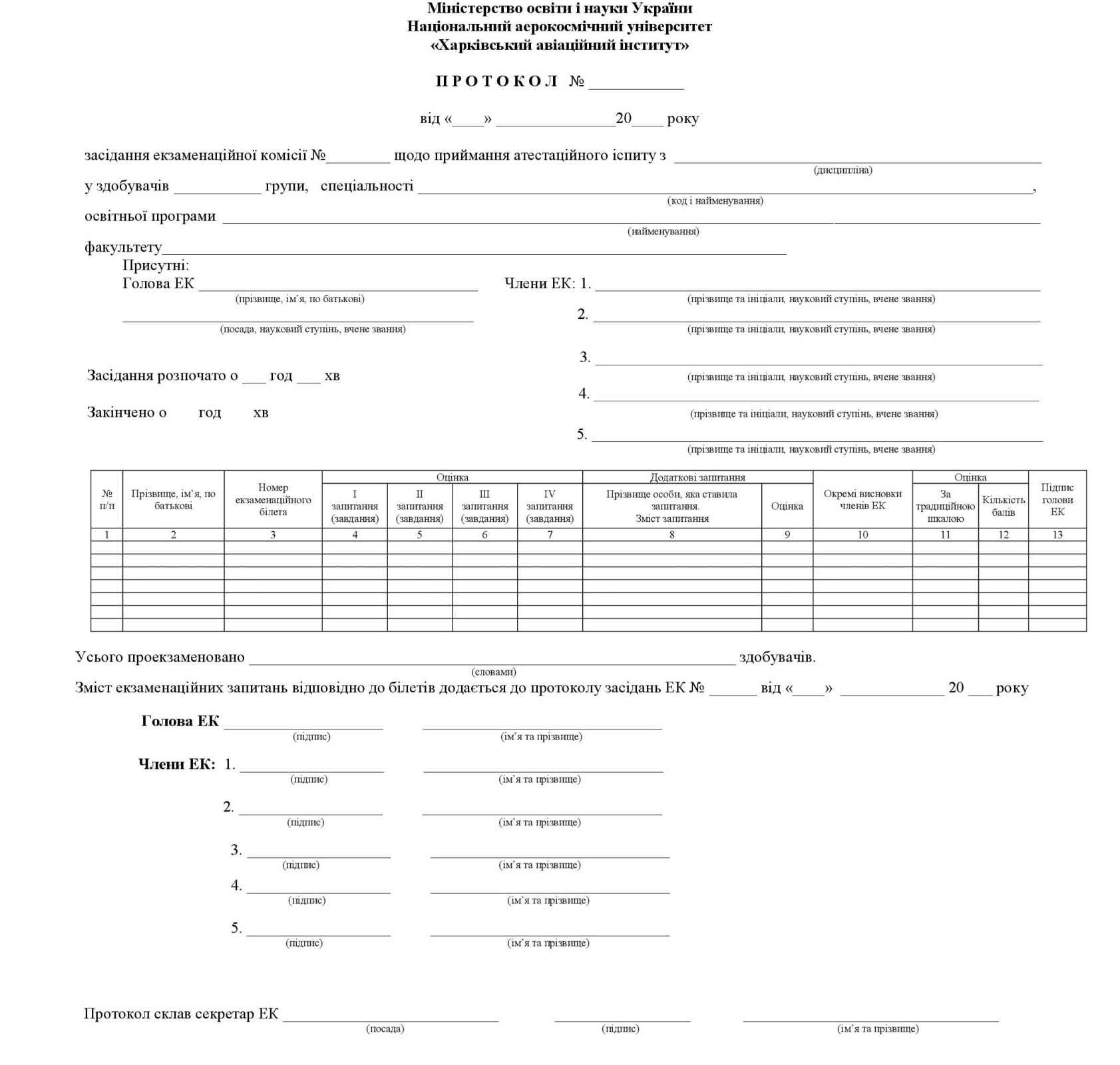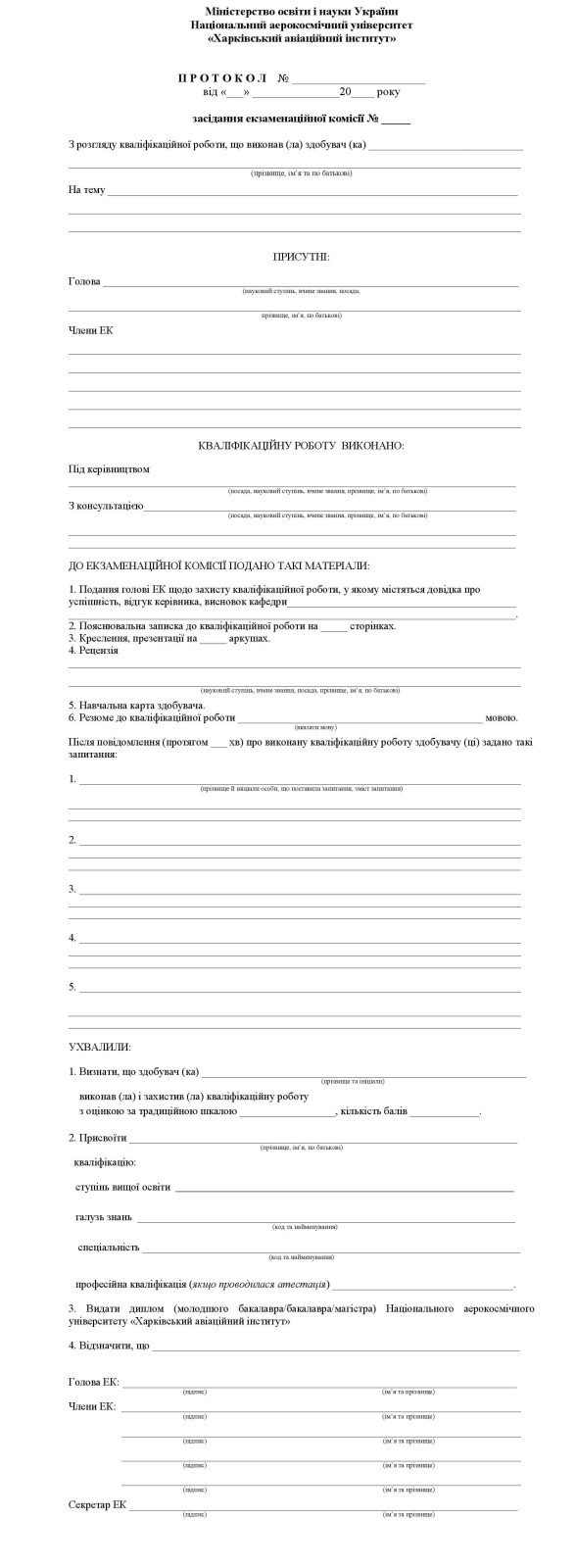 Форми протоколів засідання екзаменаційної комісії