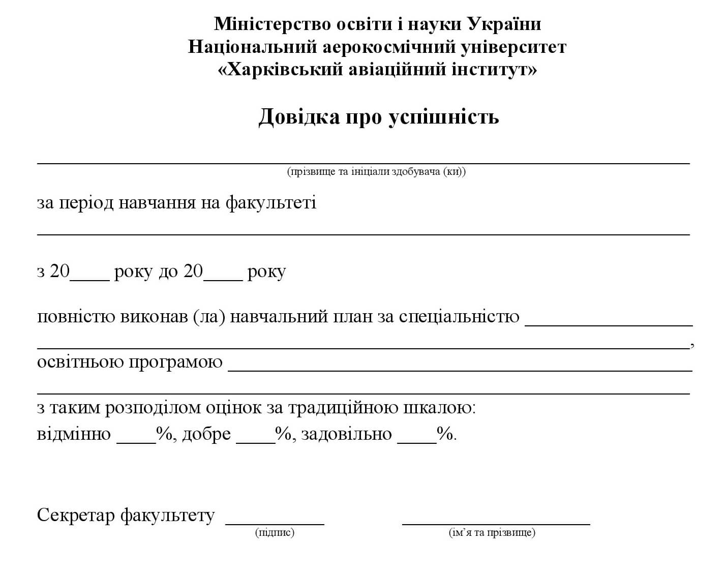 Форма довідки про успішність