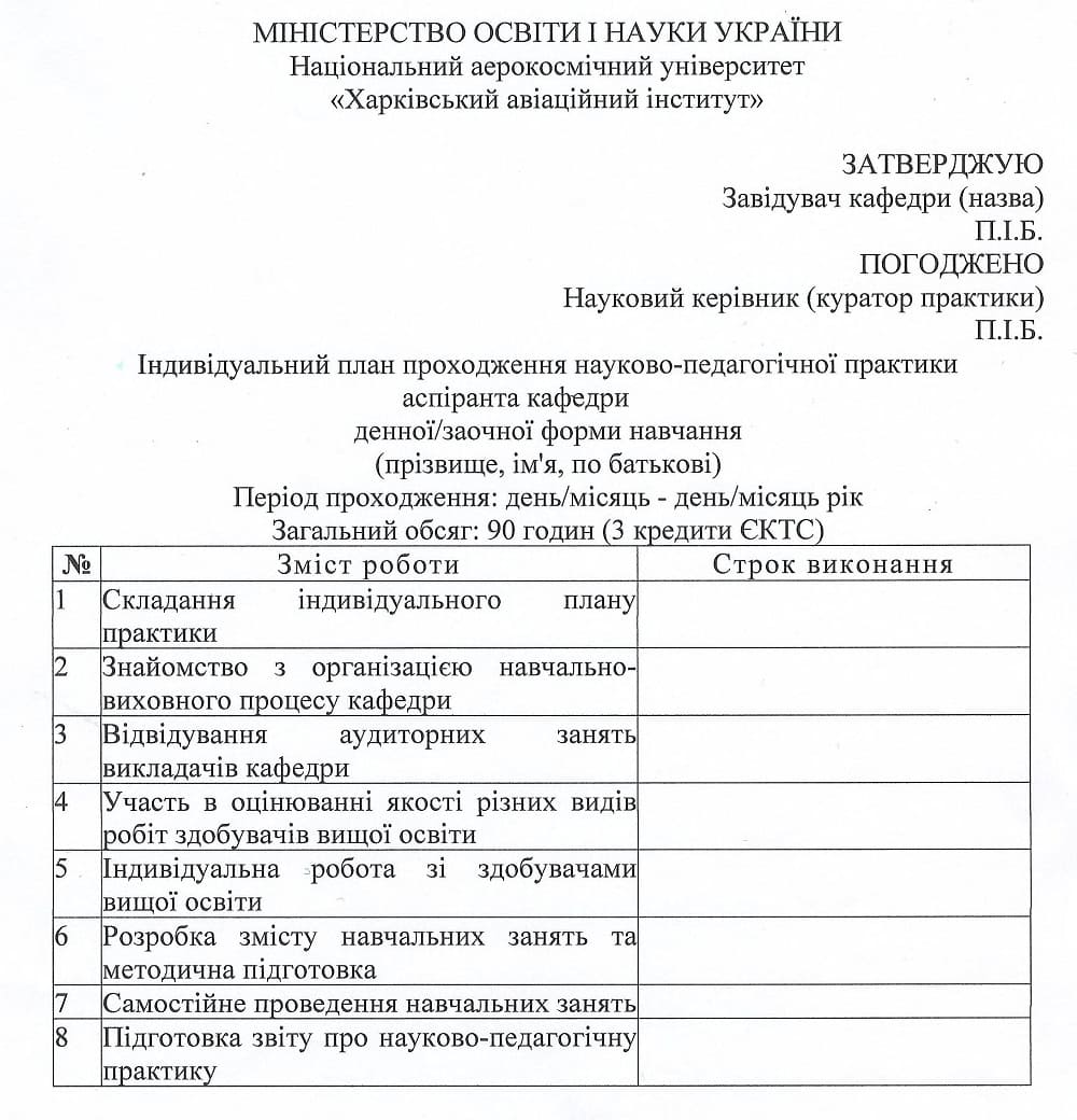 - погоджує індивідуальний план проходження науково-педагогічної практики;