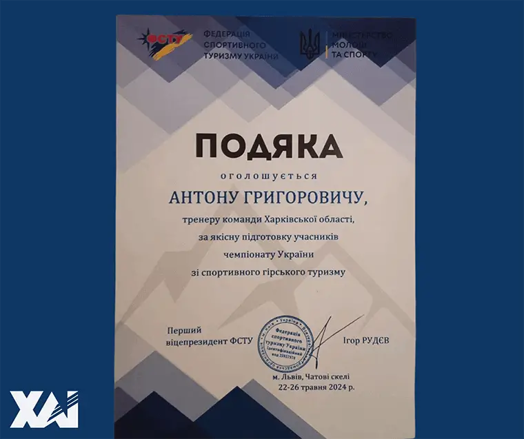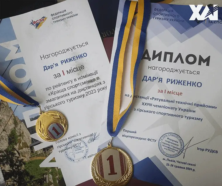 1 місце на дистанції рятувальних технічних прийомів зайняла збірна Харківської області, до складу якої входила член туристського клубу ХАІ Дар'я Риженко. Також Дар'я за підсумками виступів минулого року визнана переможцем у номінації "Найкраща спортсменка року" на змаганнях на дистанції з гірського туризму.