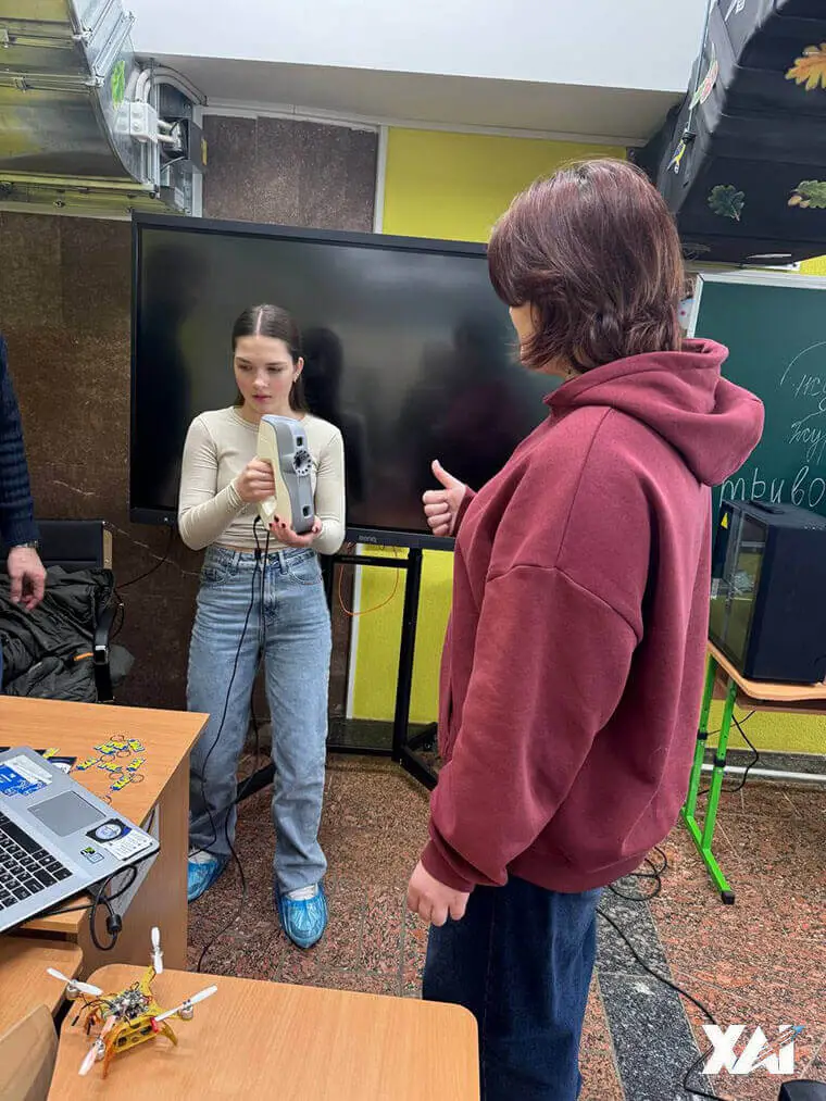 Юні дослідники мали змогу зануритися у віртуальну реальність; отримали 3D-портрет, створений за допомогою професійного 3D-сканера; покерувати коптерами; дізнатися як вони можуть сприяти покращенню екологічної безпеки, опанувати дозиметр, вимірювач рівня шуму та люксметр.