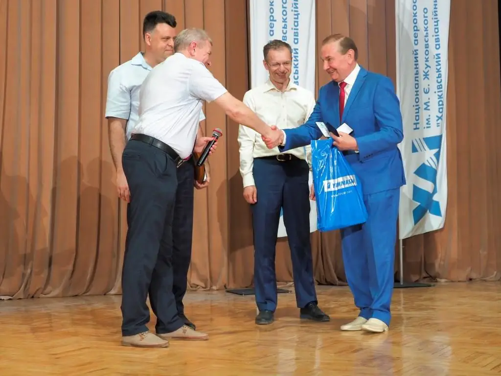 Захід відкрив духовий оркестр ХАІ, який виконав Гімн України. На сцені з промовами виступали ректор університету Микола Нечипорук, народний депутат Олександр Бакумов, заступник голови ХОДА Роман Семенуха, секретар Харківської міськради Ігор Терехов, голова правління ПрАТ «ФЕД» Віктор Попов, директор Національного центру аерокосмічної освіти молоді ім. О. М. Макарова Олексій Кулик та інші шановні гості, нагороджуючи провідних фахівців університету та даруючи університету-імениннику подарунки.