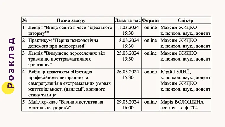 Тематика заходів охоплюватиме захист та підтримку ментального здоров'я, з особливим акцентом на психологічну підготовку до діяльності в кризових ситуаціях.