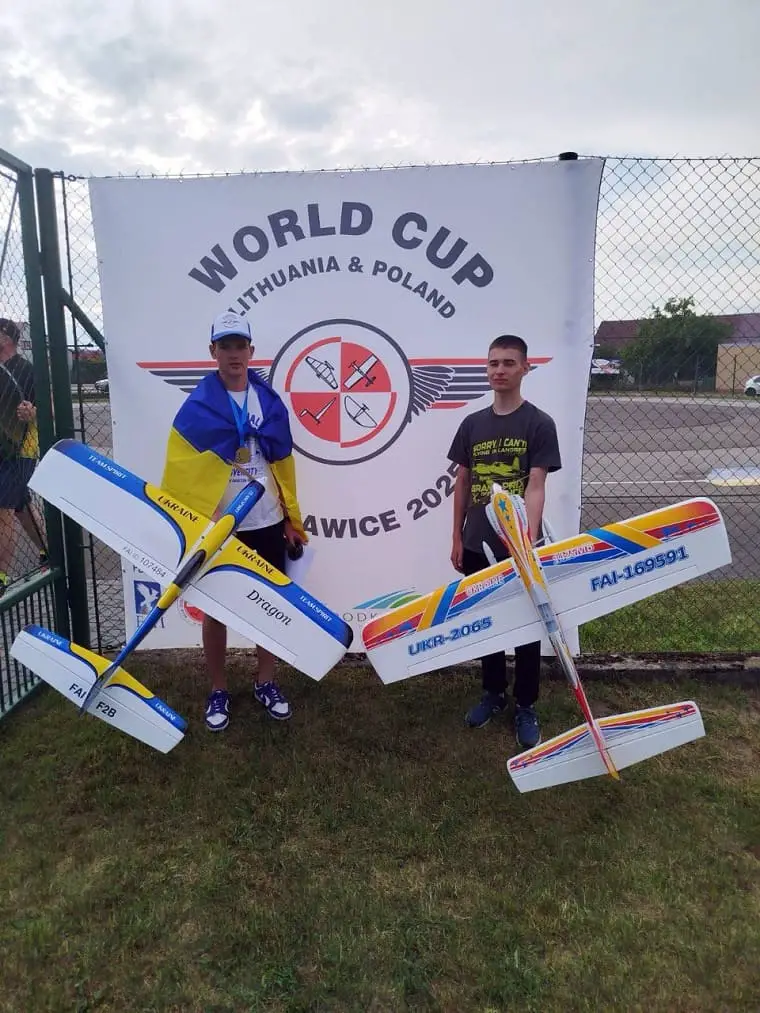 Поруч на фото, з прапором України — Микола ТКАЧУК, ще один представник авіамодельної лабораторії ХАІ, який цього року очолив СВІТОВИЙ РЕЙТИНГ СЕРЕД ЮНАКІВ!