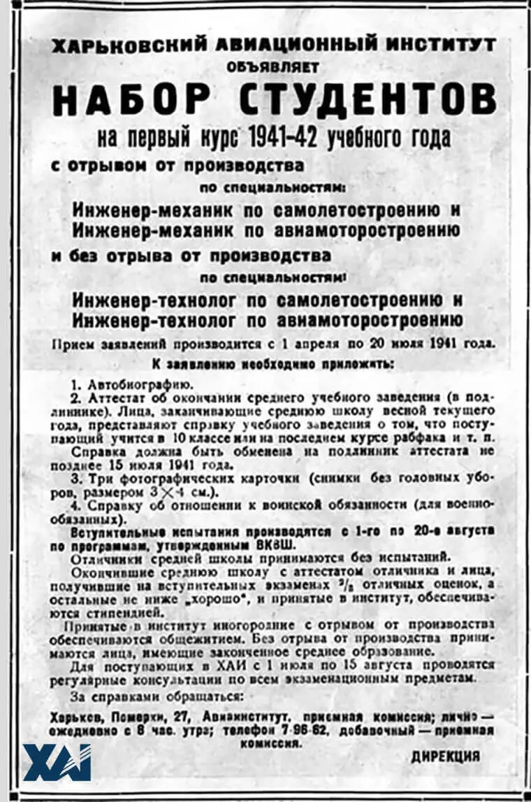 Мільйони щасливих чоловіків, жінок, дітей тоді ще не знали, що доля вже запустила свій страшний відлік. Не знали це й студенти ХАІ. Саме в цю хвилину, коли Ви читаєте цей пост, 83 роки тому сімдесят студентів-добровольців з ХАІ вже стояли у черзі до військкомату. Через 10 днів до них приєднаються ще сорок шість…