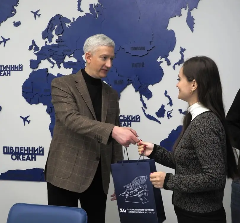 В.о. ректора Олексій Литвинов вручив гостям пам’ятні подарунки від університету та запросив їх на святкування Дня ХАІ — де завжди радо приймають дорогих друзів і партнерів.
