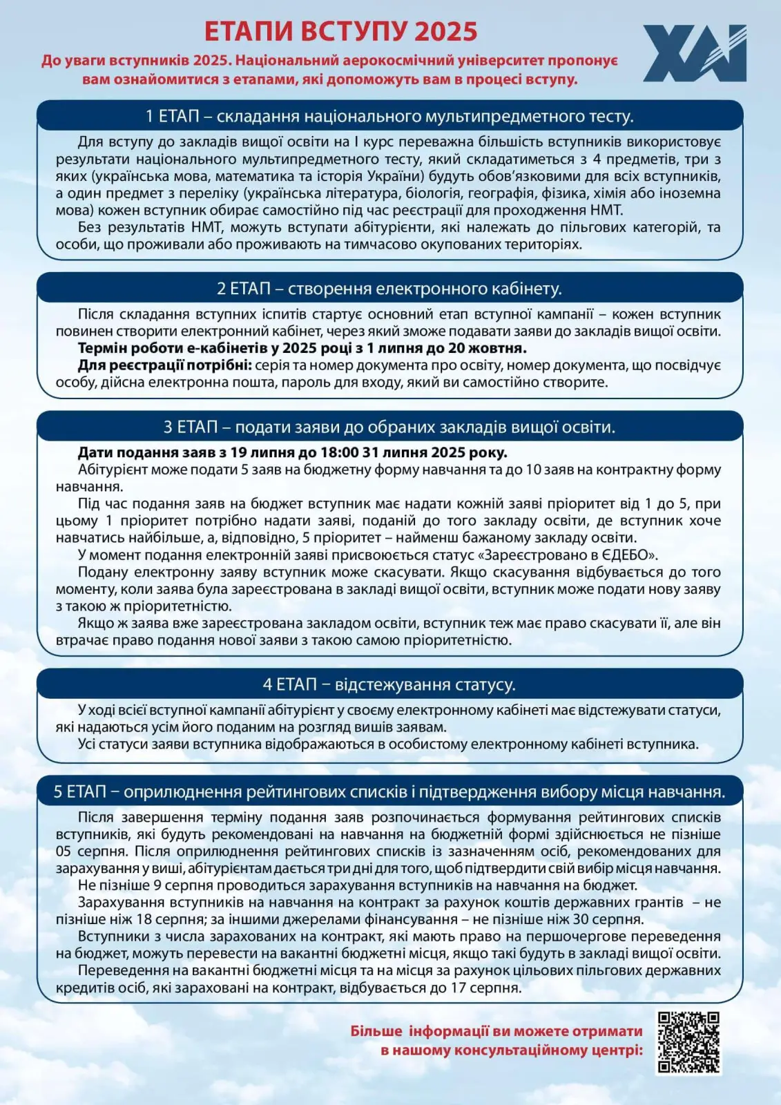 Національний аерокосмічний університет ім. М.Є. Жуковського “Харківський авіаційний інститут” пропонує Вам ознайомитися з основними етапами, ЯКІ ДОПОМОЖУТЬ ВАМ В ПРОЦЕСІ ВСТУПУ: