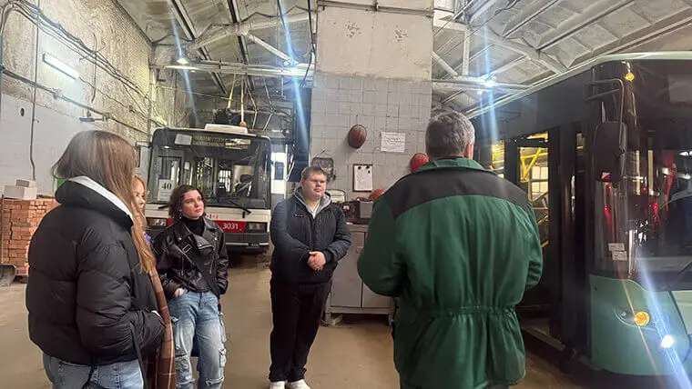Інженери депо показали студентам повний цикл обслуговування тролейбусів — від технічної діагностики до ремонту складних вузлів, пояснили принципи роботи тягових електродвигунів, систем керування та енергоспоживання цього екологічного виду транспорту.