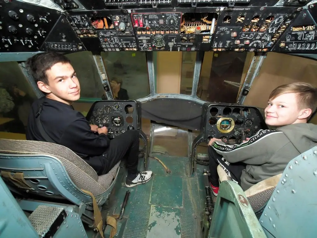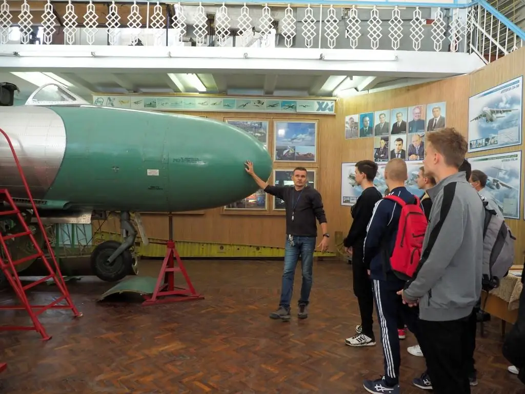Групу майбутніх вступників біля фотозони «Літак МіГ-23» зустрічали в. о. начальника відділу доуніверситетської освіти Вікторія Пітлик і заступник декана факультету літакобудування з навчально-виховної роботи Антон Григорович.