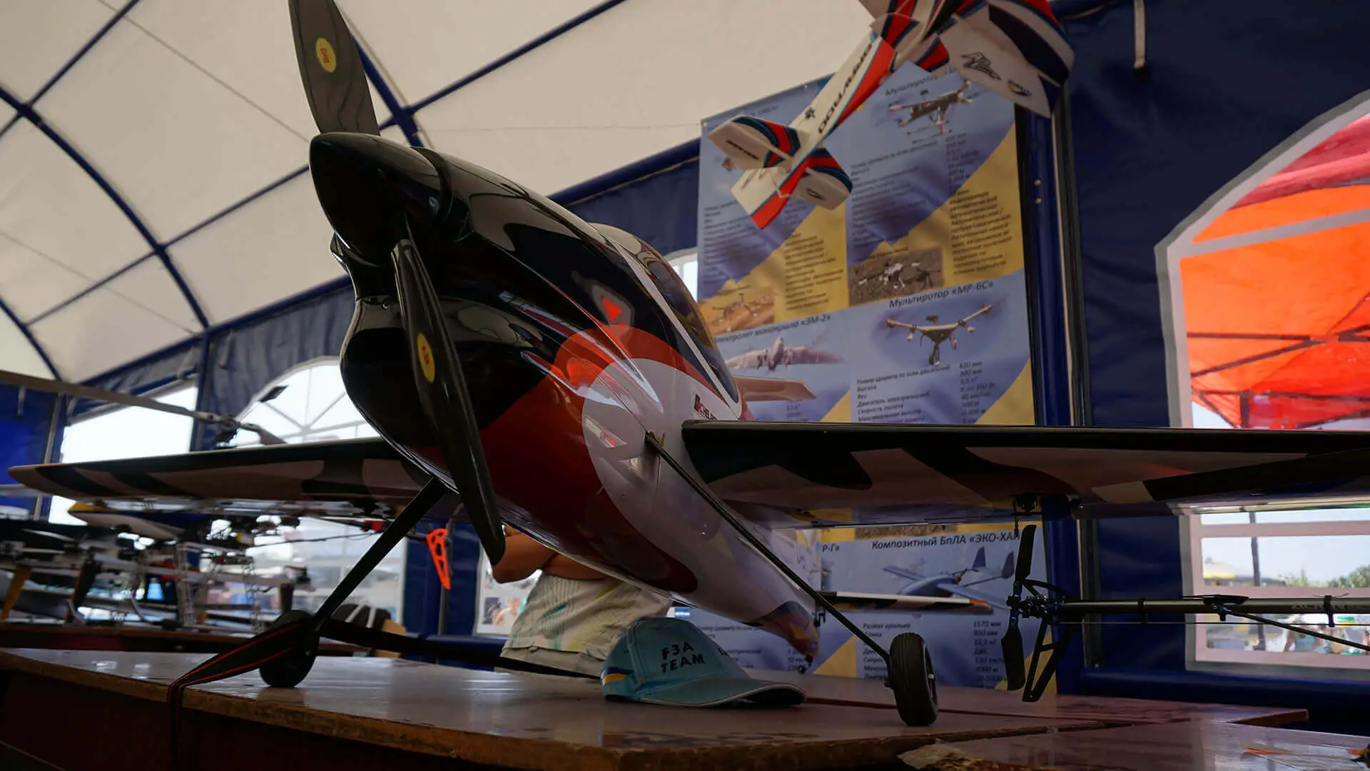 Модель літака, експонатна з гвинтами, що обертаються і керуються з пульта.
