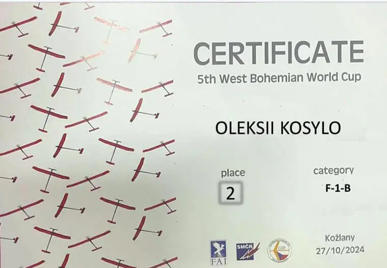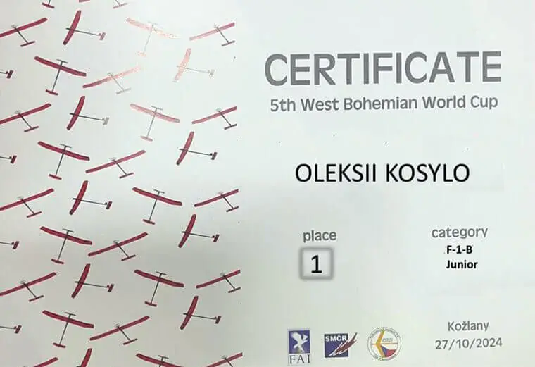 Першокурсник ХАІ ОЛЕКСІЙ КОСИЛО - 1 місце (у класі F1B) та 2 місце (F1A) серед юніорів. А ще срібло серед досвідчених спортсмені у класі гумомоторних моделей (F1B).
