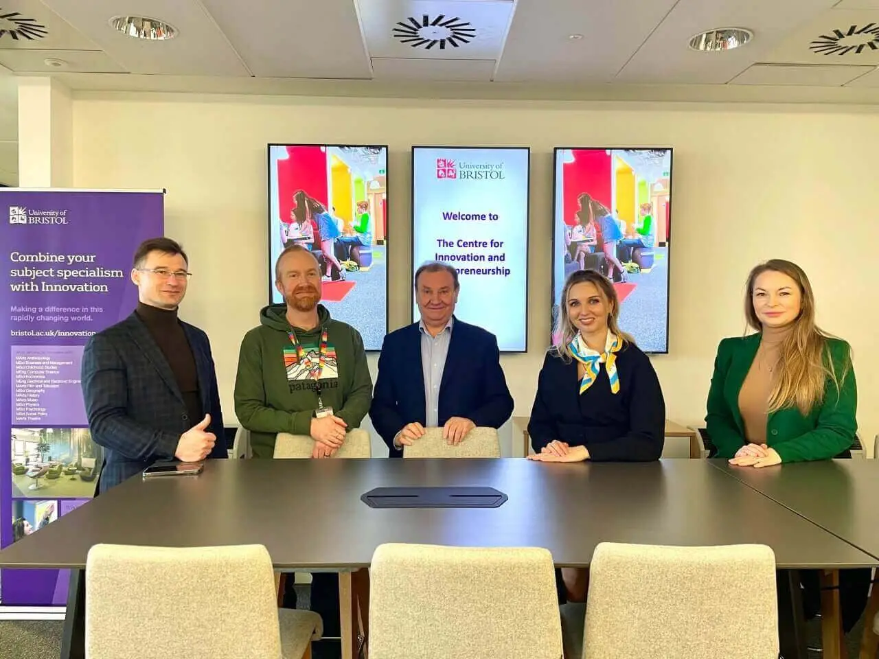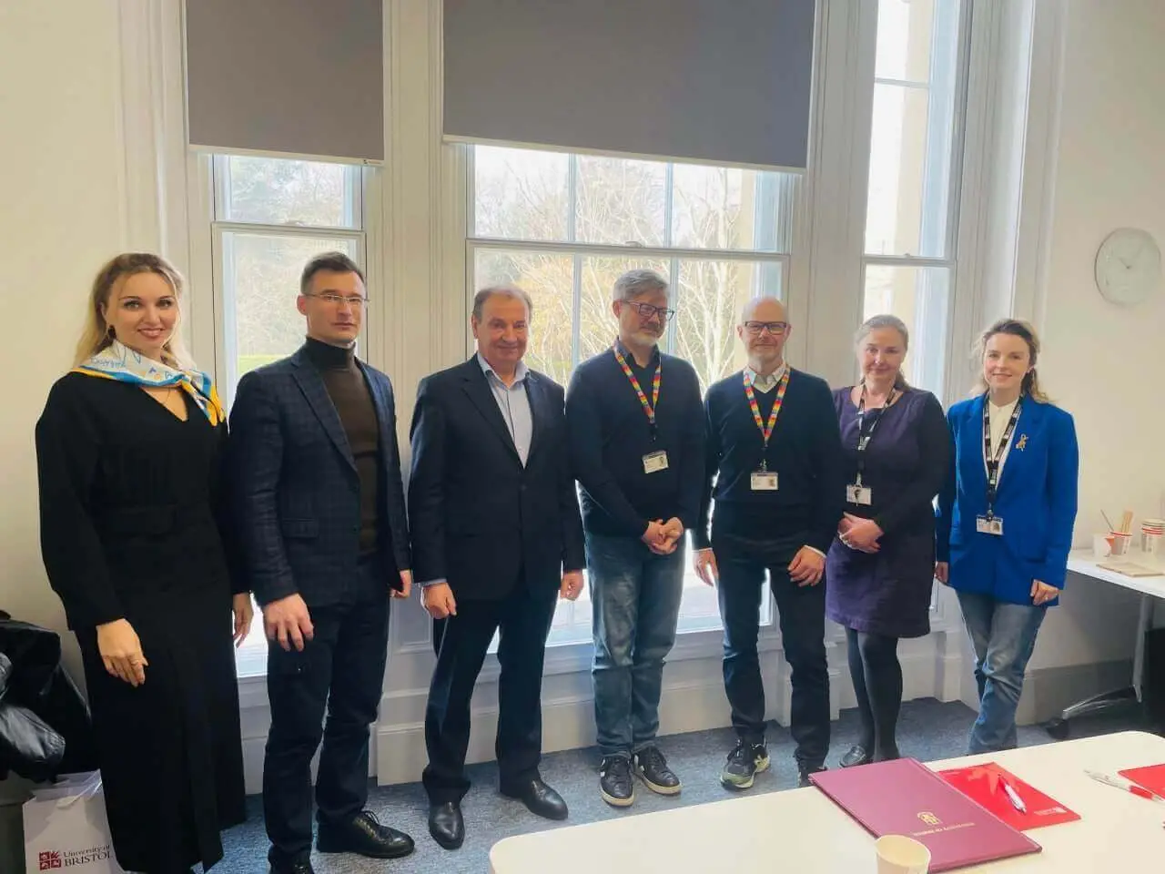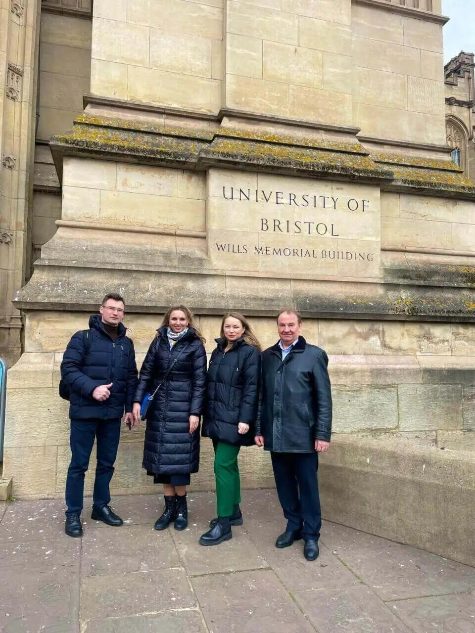 Ректор ХАІ Микола Нечипорук, проректор з наукової роботи Володимир Павліков та начальниця відділу міжнародних зв’язків Олена Агапова також поспілкувались з українськими студентами та викладачами Університету Брістоль, у минулому випускниками ХАІ.