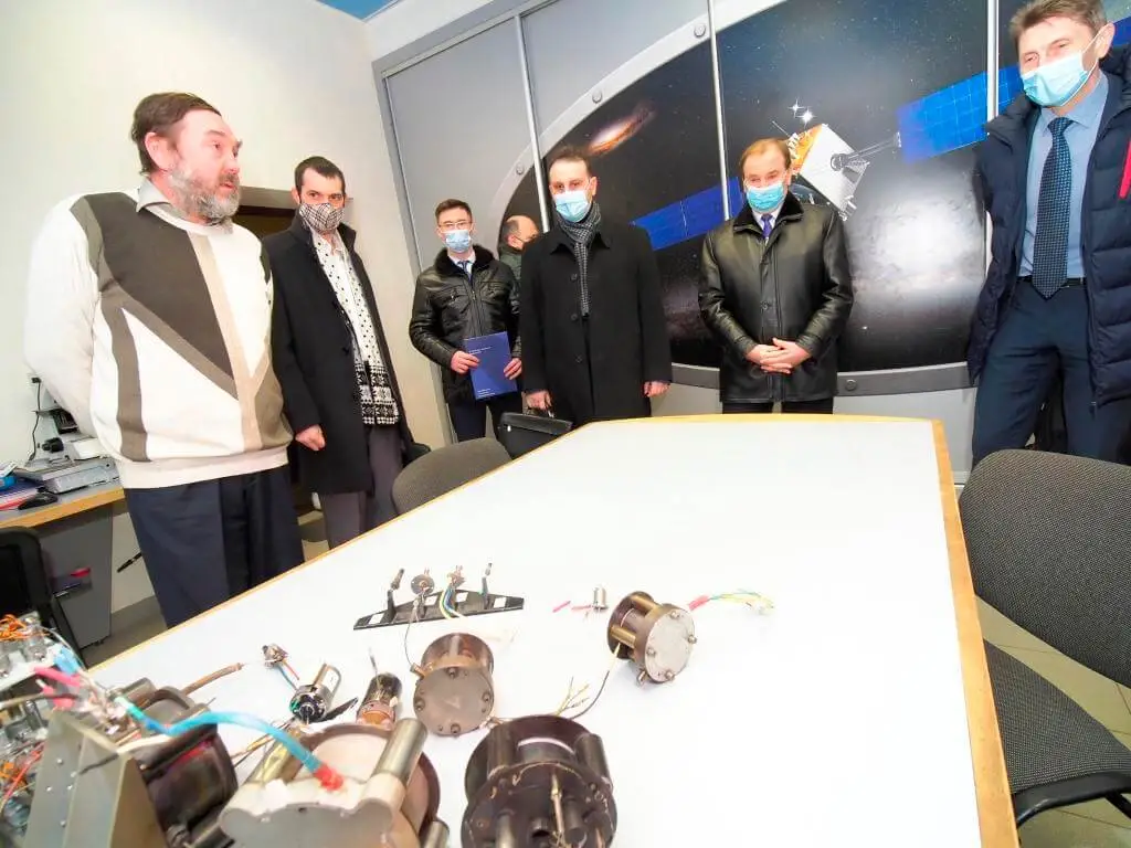 Учений Андрій Лоян зустрічав гостей у лабораторії електроракетних двигунів, куди проторували шлях численні телекомпанії країни, які освітлювали прорив харківських учених у кооперації з виробниками ПрАТ «ФЕД». ХАІ – єдина державна установа, яка має парк високовакуумних випробувальних стендів, без чого розробка іонно-плазмових двигунів є неможливою. Гостям також показали найбільшу камеру, що майже не потрапляє на фото. Обговоривши на місці плани потенційного партнерства, екскурсанти перейшли до сусідньої лабораторії кафедри теоретичної механіки, машинознавства та роботомеханічних систем (202), де провадяться роботи зі створення двокомпонентних систем охолодження космічних об’єктів і супутників.