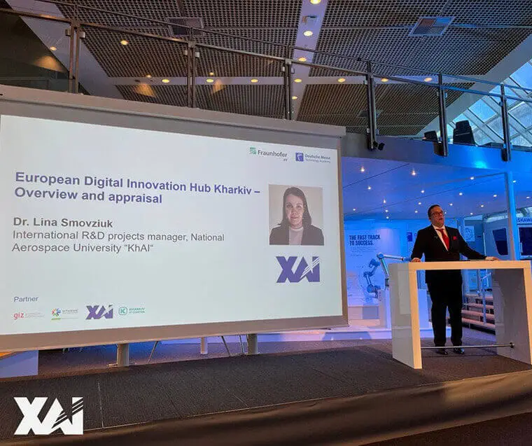 Проректор з наукової роботи Національного аерокосмічного університету ім. М. Є. Жуковського "Харківський авіаційний інститут", Володимир Павліков та співробітниця відділу міжнародних проєктів і програм Ліна Смовзюк, відвідали виставку HANNOVER MESSE 2024, яка розпочалась 22 квітня 2024 року і буде проходити до 26 квітня в місті Ганновер, Німеччина.