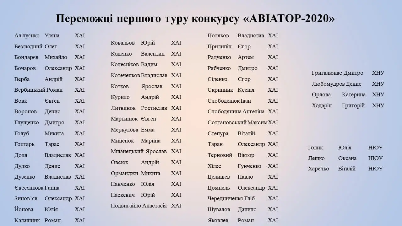 У другий етап пройшли 52 студенти з НАУ ім. М. Є. Жуковського «ХАІ», троє – з НЮУ ім. Ярослава Мудрого й четверо – з ХНУ ім. В. Н. Каразіна. Результати також можна перевірити на e-mail та офіційному сайті фонду.