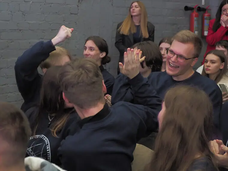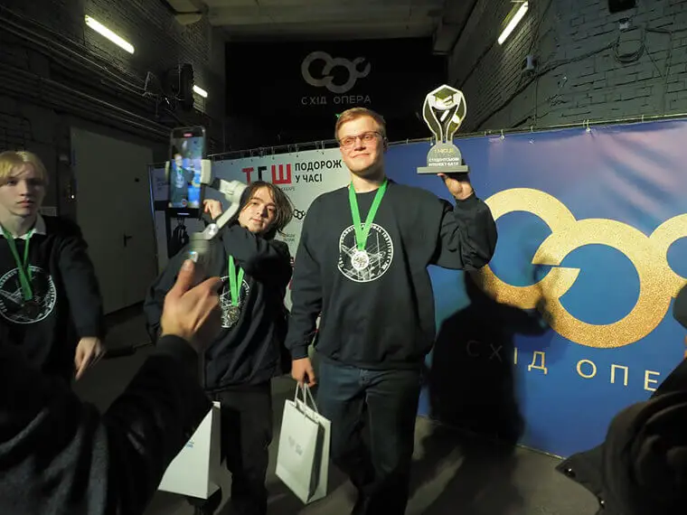 Оплески зала, «золото» батлу, вітання від всього ХАІ інтелектуальному ЧЕМПІОНУ Харкова команді «АВІАТОР» у складі: