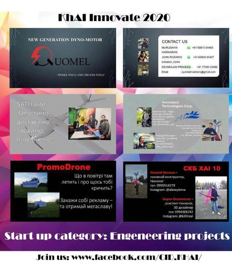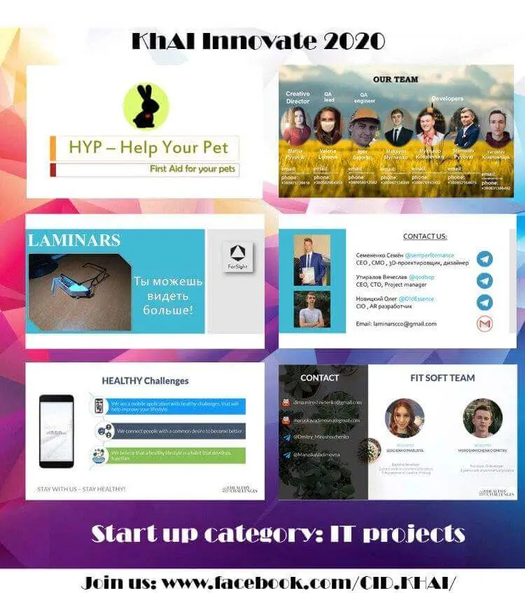 KhAI Innovate 2020 – це 8 команд з креативними проектами, представленими в трьох предметних категоріях: IT, інжиніринг і соціальна справа. Братимуть участь команди: