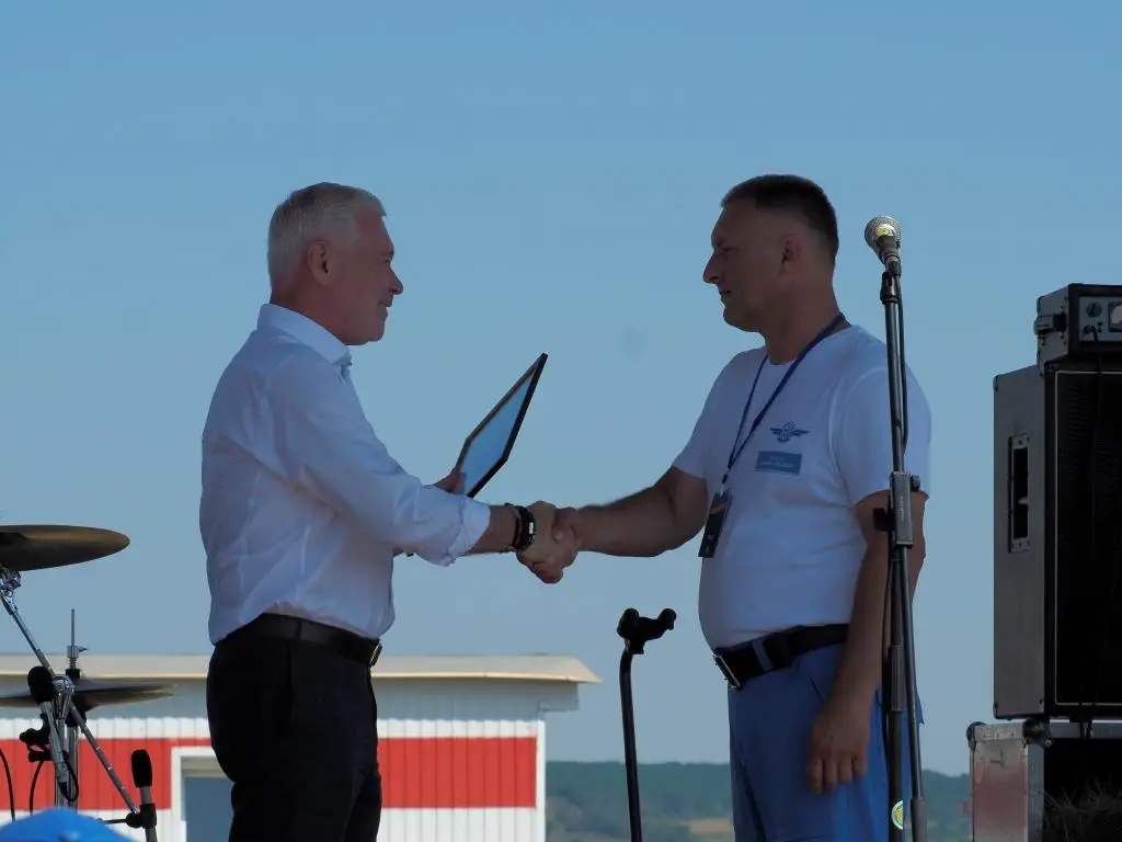 З привітальними словами на сцені виступили начальник Харківського аероклубу ім. В. С. Гризодубової Сергій Філатов, заступник голови Харківської обласної ради Альберт Кононенко, секретар Харківської міської ради Ігор Терехов, а також ректор нашого університету Микола Нечипорук.