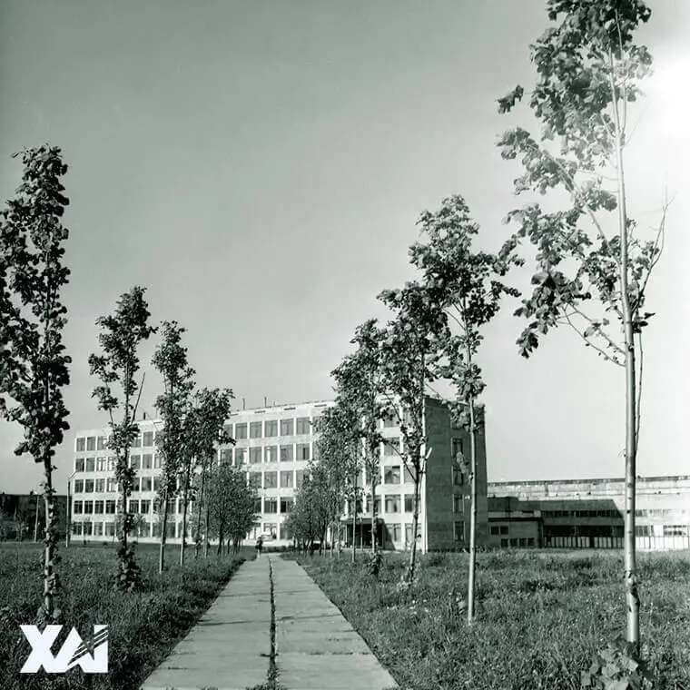 Мимо цих корпусів, літаків, будівель ми проходимо майже не щодня. Але сьогодні важко уявити, що колись липи на алеї до Імпульсного корпусу були маленькими саджанцями, в кіоску біля Головної прохідної можна було купити свіжу газету, а поруч випити газіровки з автомату, над кафе Молодість працював переговорний пункт, а легендарний СУ-7Б біля Радіокорпусу стояв у гордій самоті.