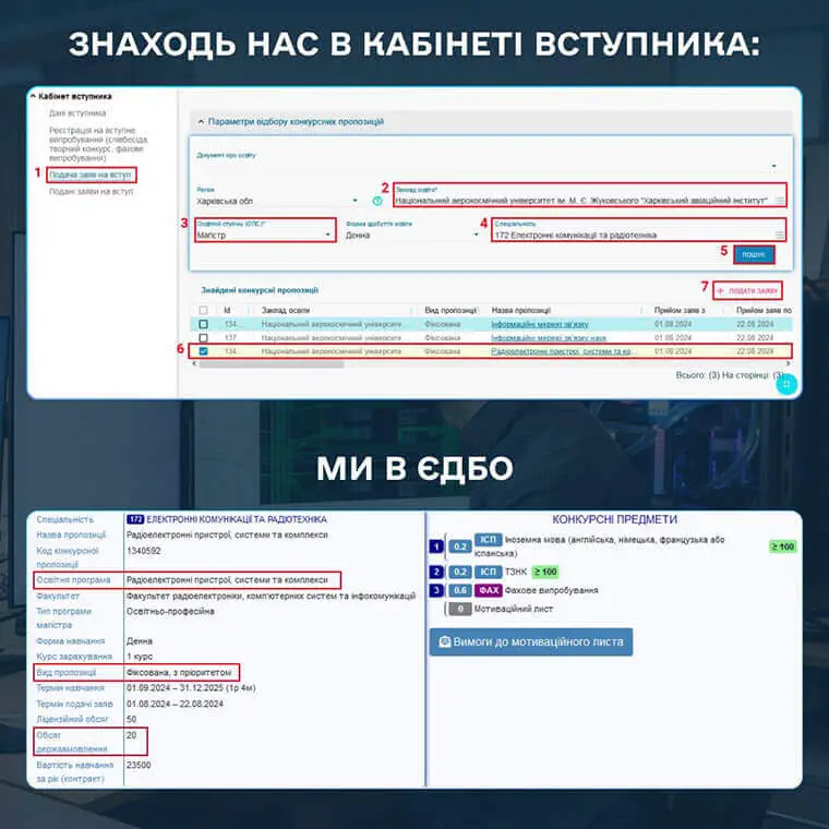Гортай, щоб побачити, як знайти нас в кабінеті вступника.