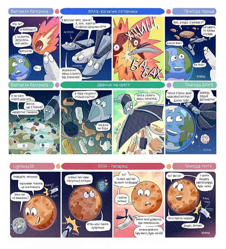 Візуальний складник проєкту доповнив комікс «Космічні пригоди безпілотників», створений художницею Катериною ВАРТАНЯН (каф. 602).