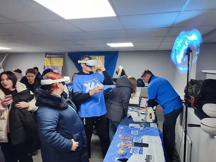 Школярам було представлено – 3D сканер, біонічних роботів, AR-живопис, VR-окуляри, набір препарованих охолоджуваних лопаток турбіни, лопатки парової турбіни, лопатку двигуна-велетня літаків «Руслан» та «Мрія» Д18Т.