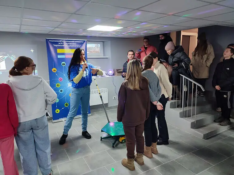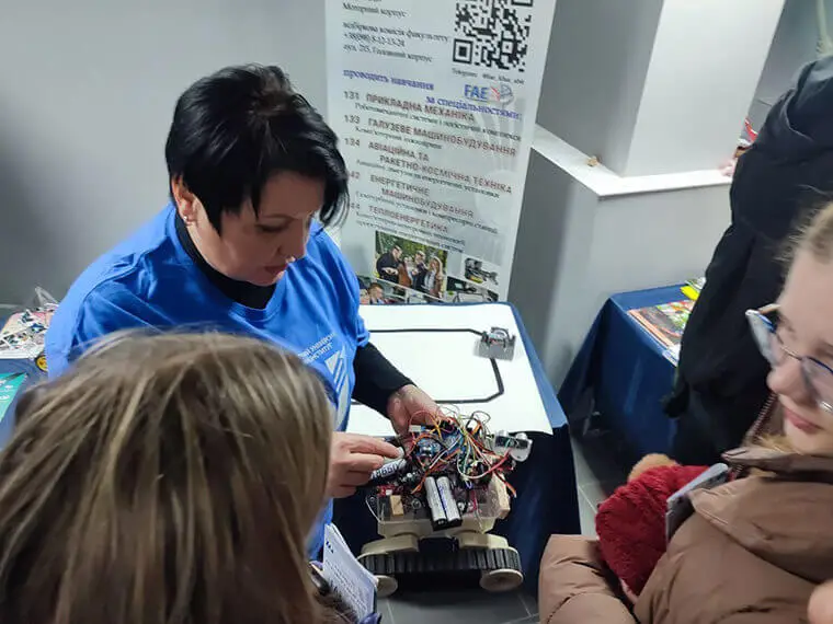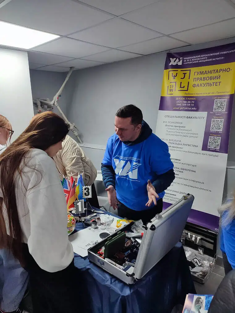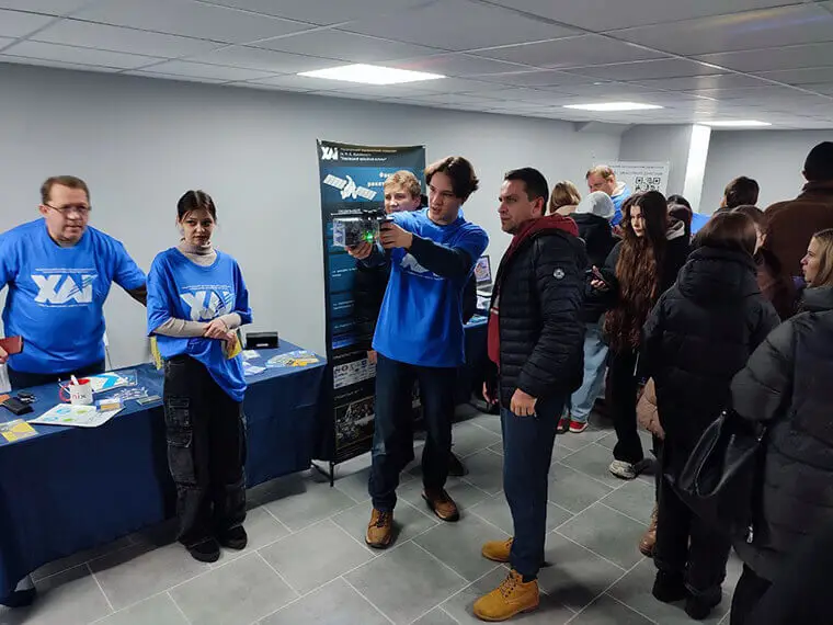 Старшокласники оцінили роботу нейронної мережі та комп'ютерного зору, макет розумного будинку, лабораторну модель з функціями реального супутника CubeSAT, модель ракети, нові підручники, за якими буде проводитися навчання на спеціальності 035 та авіаційні кольорові трьохмовні словники, що були створені студентами ХАІ.